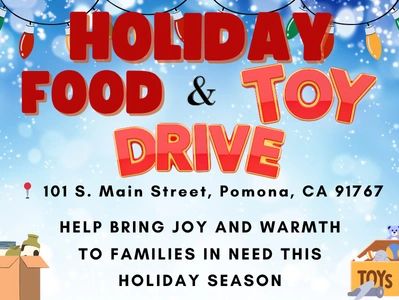 The spirit of giving is alive in Pomona! Join us as we collect non-perishable food items, new unwrapped toys, and warm essentials to support local families during the holidays.